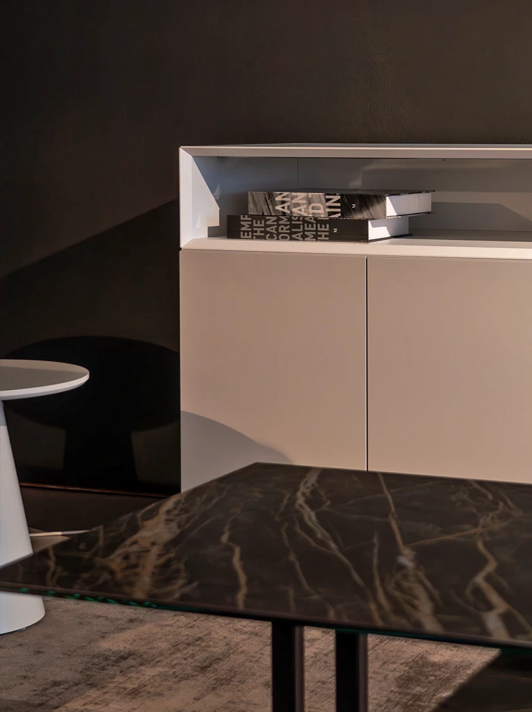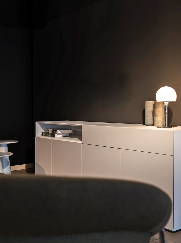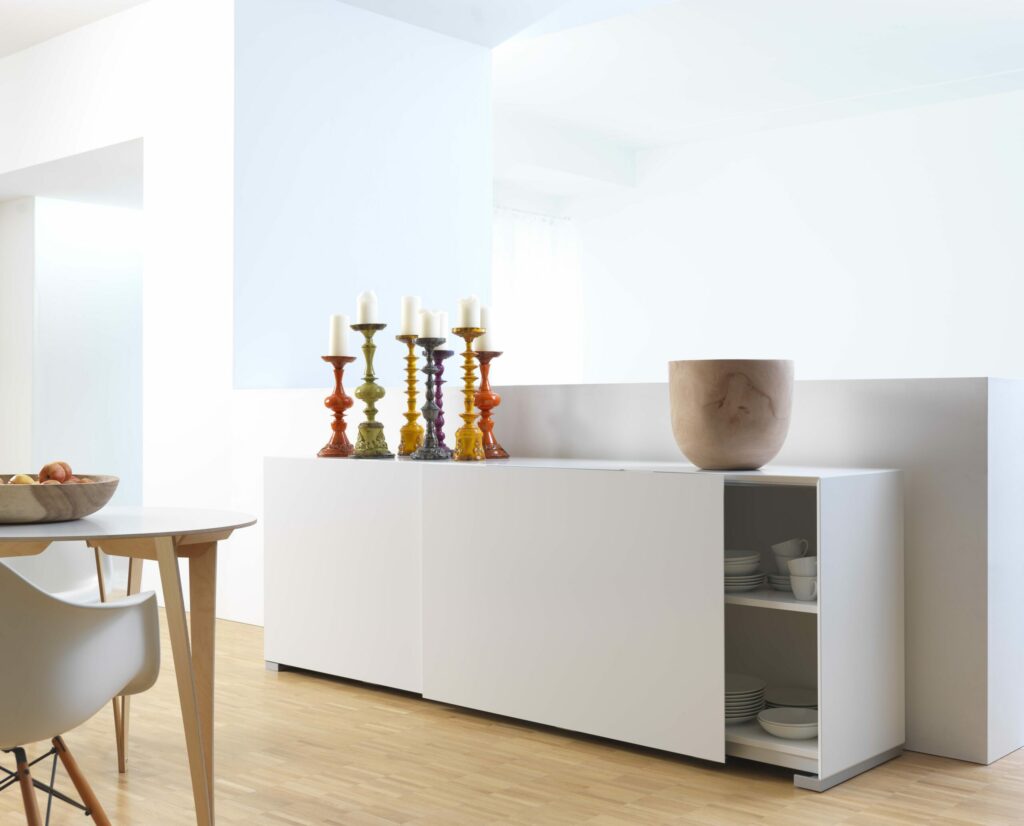 Mühelos dezent fügt sich pure in den Raum. Sein kubisches Design wirkt in sämtlichen Dimensionen aus dem Hintergrund. Funktional und kunstvoll zugleich lassen sich Schubladen, Klappen, Türen oder offene Elemente kombinieren. Persönlichkeit zeigt pure durch seine Anpassungsfähigkeit – auffällig oder subtil – und durch eine auserlesene Farbpalette.