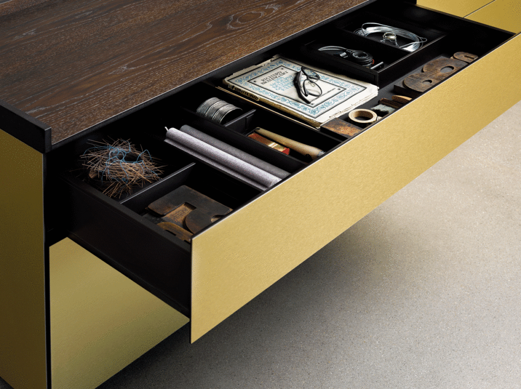 pure Sideboard Detail Schublade Wenge und Metallicoberflaechen
